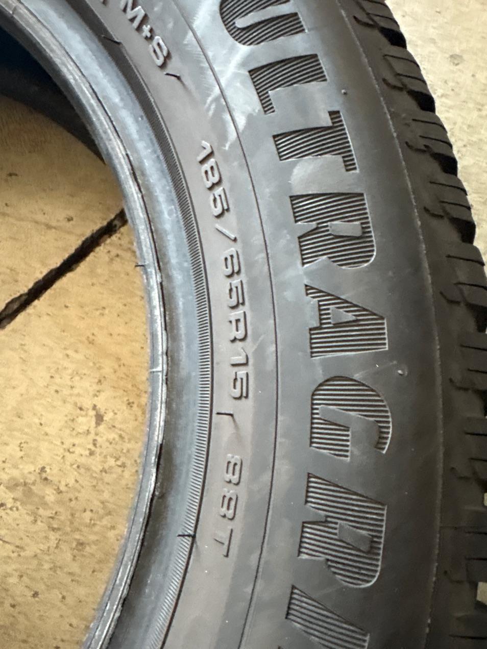 Marca e disegno pneumatici GOODYEAR ULTRAGRIP9. Misura, indice di carico, codice di velocità e marcature: 185/65 R 15 88 T. 6 millimetri residui di battistrada. Anno di produzione 2018 DOT (3918)