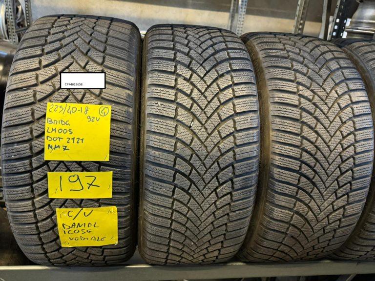 Marca e disegno pneumatici BRIDGESTONE BLIZZAK LM005. Misura, indice di carico, codice di velocità e marcature: 225/40 R 18 92 V. 7 millimetri residui di battistrada. Anno di produzione 2021 DOT (2121)